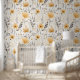 Yellow grey floral pattern wallpaper