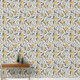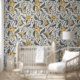 Yellow & Grey Jacobean Floral Pattern Wallpaper