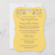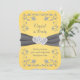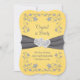 If you've found the love of your life and want to invite all your family and friends to witness the joining of your two lives and hearts then this yellow and grey floral wedding invitation with images of a pair of joined hearts overtop a charcoal grey ribbon image running across the centre of the invitation front is sure to get everyone's attention. The front side has the names of the bride and groom above the hearts, and below the hearts is a customisable verse that says, "Two lives, two hearts, joined together by friendship, united forever in love". The backside has the same hearts from the front at the top of the backside on a yellow background with your wedding ceremony and reception details printed on in grey. RSVP details are also included, making this pretty bracket-shaped wedding invitation very affordable for couples on a fixed budget. If you need any additional matching items, please email your request to niteowlstudio@gmail.com or use the Zazzle chat feature to get in touch.
