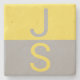 Yellow & Grey Modern Initials Monogram Stone Coaster