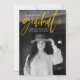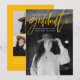 Modern graduation announcement card featuring your graduate's favorite photo on the front with "Graduate" in a yellow handwritten script. Personalize the front of the announcement by adding the graduate's name, school name, and graduation year. The trendy graduation announcement reverses to display an additional 3 photos with space for text such as future plans, graduation details, party details, etc. The 4 photo graduation announcement is perfect for both high school and college graduates.