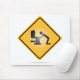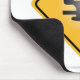 Mousepad with a yellow traffic warning sign with an icon vomiting over a toilet showing a hangover.