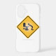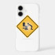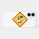 Mobile phone case with a yellow traffic warning sign with an icon vomiting over a toilet showing a hangover.