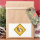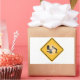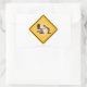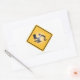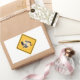 Rectangular sticker of a yellow traffic warning sign with an icon vomiting over a toilet showing a hangover.