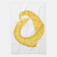 Yellow heart dragon on white tea towel