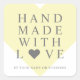 Yellow Heart with Handmade with Love Quote Square Sticker