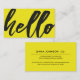 A lighthearted and fun Sunshine yellow business card featuring a "hello" script on the black cursive front. On the reverse side is a spot for your unique business information.