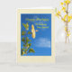 Single yellow hibiscus on a long stem with a background of a blue sky and two clouds framed in yellow linen. Card reads happy birthday to someone very special