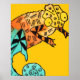 Perfect for a kid's bedroom or playroom with original illustration design from watercolour and ink by artist Sacha Grossel of yellow, brown and blue chameleon against mustard yellow background. This quirky and special reptile is cute and bright. For lizard and reptile lovers everywhere