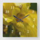 Wall clock featuring a close up of a beautiful yellow iris. The fuzzy looking part is called the beard.