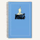 This fun, blue notebook has an illustration of a silly, yellow Lab standing on top of and squishing the hand-lettered text, "Notes," as the dog rubs his head on it. A white rectangle surrounds the perimeter of the journal to add more visual interest and to finish off this more modern design. A unique, custom gift for dog lovers and Labrador retriever owners any time of the year.