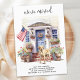 Announce your move to family and friends with our patriotic moving announcement featuring a beautiful watercolor painting of a Yellow Labrador dog, modern house with a blue door and the American flag proudly displayed on the front porch. This announcement is perfect for dog lovers and anyone looking to announce their new address. With its red, white, and blue colour scheme, this announcement is a great way to show your love for the USA while sharing your exciting news. Let everyone know that "We've moved!" and invite them to come visit and meet your best friend in your new home. COPYRIGHT © 2023 Judy Burrows, Black Dog Art - All Rights Reserved. Yellow Labrador Patriotic Personalised Dog Moving Announcement