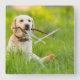 Yellow Labrador Plays Fetch With Stick Square Wall Clock