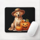 Yellow Labrador Puppy Wearing Hat with Pumpkins Mouse Mat