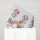 Destei's original cartoon illustration of a cute yellow Labrador Retriever breed dog. The dog is placed in a colourful birthday setting with pastel colour birthday balloons and gifts. The pastel colours include pink, green, blue, red, orange and purple. The background has a playful pastel colour polka dot pattern. There is also a personalizable text area that now reads: "Happy Birthday!". The design is placed six times creating a small pattern.