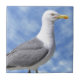 Yellow-legged Gull (Larus michahellis - Bird) seen of profile on rock on a background of cloudy blue sky