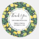 Wedding thank you stickers. Designed with a cute pattern featuring yellow lemons and green lime fruit with stalks of leaves set on a dark green background.
