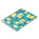 Happy yellow lemons and leaves pattern. Tropical vibes. Turquoise background.