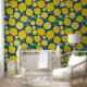 This is cute yellow lemons with little slices on blue background. It's great looking design for kitchen and living room wallpaper