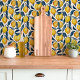 Yellow Lemons and Blue Leaves Kitchen Wallpaper
