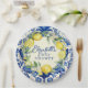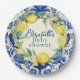 Yellow Lemons Blue Tile Lemon Baby Shower Paper Plate