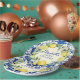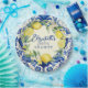 Celebrate the mummy-to-be with these vintage Mediterranean blue tiles and lemon inspired paper plates . These Vintage Blue tile and lemons Baby Shower paper plates can be customised with your own details. The design features a vintage blue tile background with realistic lemon artwork.