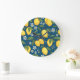 Yellow Lemons: Tropical Fruit Pattern. Large Clock