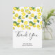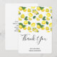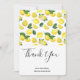 Thank you card with a cute pattern of yellow lemons with green leaves and fresh cut lemon slices.