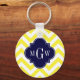 Yellow Lg Chevron Navy Quatrefoil 3 Monogram Key Ring