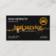 In a black cover, a luminescent yellow lightning streaks through the face of the card bringing with it your underlying signage "taxi service". Below this you have the slogan "Your Lightning Response Driver" which you can change to advertise your services. A second slogan option is available at the lower right corner. Northwards to this is a yellow taxi logo which you can use. In the opposite direction lies your prestigious name and job title whilst contact details are southwards near the base.