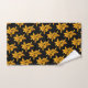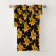 These pretty bath towels feature a repeating pattern of two golden yellow Asiatic lilies against a pure black background.