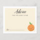 Cute little cutie theme baby shower advice cards with hand illustrated art of an orange fruit with a smile. This yellow design is perfect for a gender neutral shower.