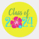 Yellow Luau Tropical Graduation Round Stickers
