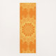 A Yellow mandala with your initial in the centre on an orange background. The back has the opposite colour scheme.
