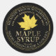 Yellow Maple Leaf Maple Syrup Metallic Gold Font Classic Round Sticker