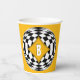 Yellow Medallion Over Black and White Diamonds Paper Cups