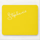 Yellow Minimalist Personalized Script Name Modern Mouse Mat