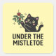 Celebrate the holidays with a touch of feline fun with this modern yellow art sticker. The design captures a black cat playfully interacting with a sprig of mistletoe, complete with the text 'Under the Mistletoe'. Its bright yellow backdrop and clean, graphic style make it a stand-out piece for any surface. This sticker is perfect for anyone who loves cats and embraces the cozy, whimsical vibes of the holiday season. Decorate your planner, mirror, or any item that needs a dash of festive charm and a cute cat accent this Christmas.