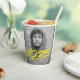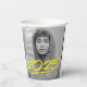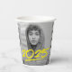 Modern graduation paper cups featuring the graduate's photo with "2023" displayed in yellow, handwritten lettering with a dash below. Personalize the photo graduation paper cups by adding the graduate's name and school name. The design repeats on the back. The personalized graduation paper cups are perfect for both high school and college graduation parties!