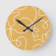 Yellow Modern Minimal Line Brush Strokes Round Clock