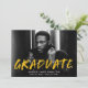 Announce your graduation with our Modern Paint Splatter photo graduation announcements. The design features the graduate's horizontal photo with "Graduate" in yellow lettering with white paint splatters. Personalize the front of the creative graduation announcements by adding the graduate's name, school name, and graduation year. The back of the announcement features a yellow background with white paint splatters. The design is perfect to use for both high school and college graduates.