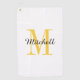 Custom printed golf towel personalised with your name and monogram initial or other custom text. Use the design tools to choose any background colour, edit fonts and colours or upload your own photos to create a unique one of a kind gift for your favourite golfer.