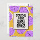Framing the central message are large, graphic purple flowers. These illustrations have a pop art quality, with their exaggerated outlines and flat colour fill, contributing to the card's overall playful and upbeat vibe.