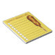 Notepad design features an original marker illustration of a delicious deep fried corn dog with yellow mustard. Just personalize with your information.