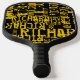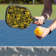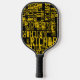 Yellow Names over Black Pickleball Paddle
