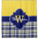 Yellow Navy Pink Madras Plaid 1ICB Ribbon Name Shower Curtain