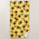 Yellow Oil Painted Sunflowers And Butterflies, Beach Towel