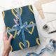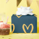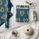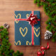 Yellow on Prussian Blue Handdrawn Hearts Wrapping Paper