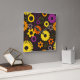 Yellow orange and purple retro flowers square wall clock
