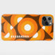 Beautiful contemporary dark yellow, bright orange, and white coloured geometric circles pattern on a brown background. With the option to customise or personalise with a name, monogram, or initials of your choice. Ornate, elegant, stylish, and eclectic design for the fancy artistic fashionista, the artsy fashion diva, popular hip trendsetter, vintage retro art style, and abstract digital geometric motif lover. This design is available in Apple iPhone 6, 7, 8, 10 or X, XR, XS, 11, 12, 13 Mini, 14, 15 Plus, and Pro Max cellphone cases. Show off your style, look fashionable trendy, and feel stylish with a unique design on a mobile device accessory of your choice.